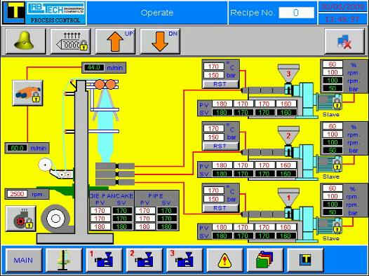 to the right shows the panel for a 3-layer co-ex film line and to the