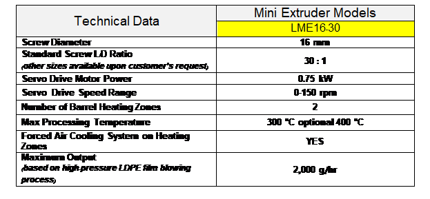 based on LDPE up to 2 kg per hour at max screw speed 150 RPM